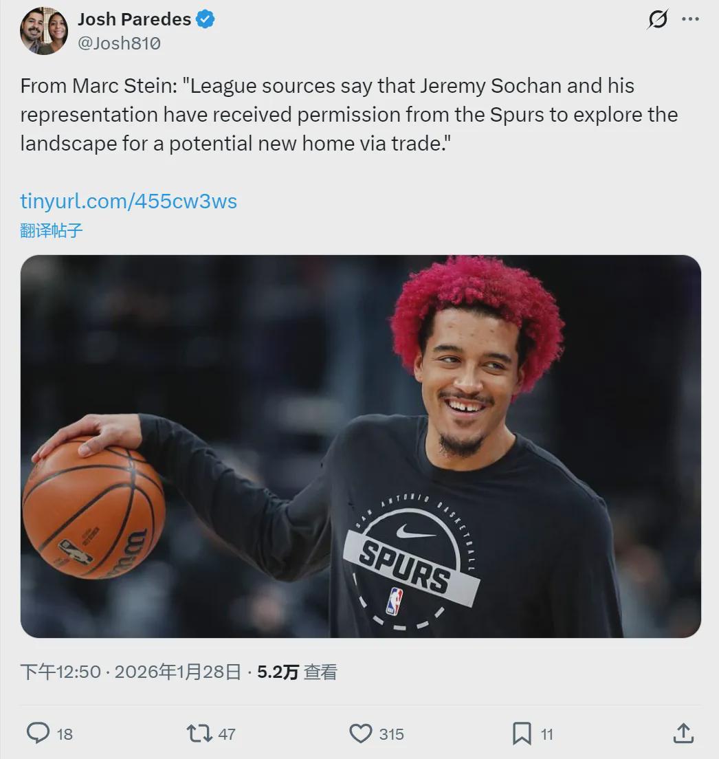 今年1月28日,索汉和经纪团队获得马刺许可,经纪团队将为索汉寻找新东家。从1月28日到2月6日交易截止日,一周多的时间,索汉并没有找到下家。如今被马刺裁掉,如果索汉愿意接受底薪合同的话,相信有球队给他机会。