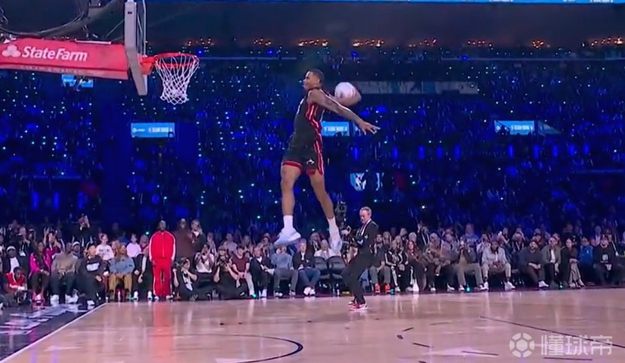 卡特-布莱恩特完成胯下大风车,得到本次扣篮大赛唯一一个满分扣篮,并将字母哥惊出“表情包”。