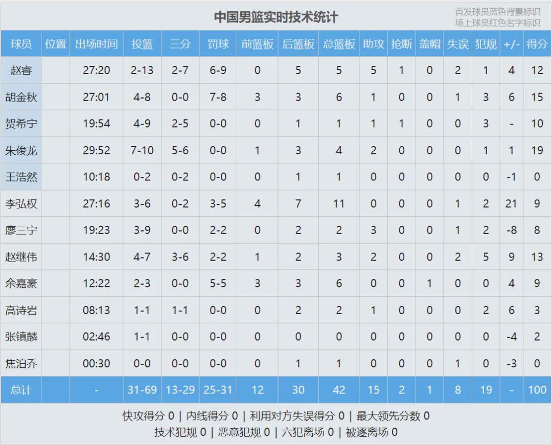 陈盈骏26分3板4助、林庭谦22分3助、高柏铠19分11板4助2断3帽、卢峻翔15分8板。最后看看数据,说说你的感受: