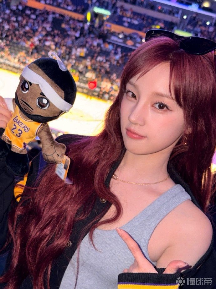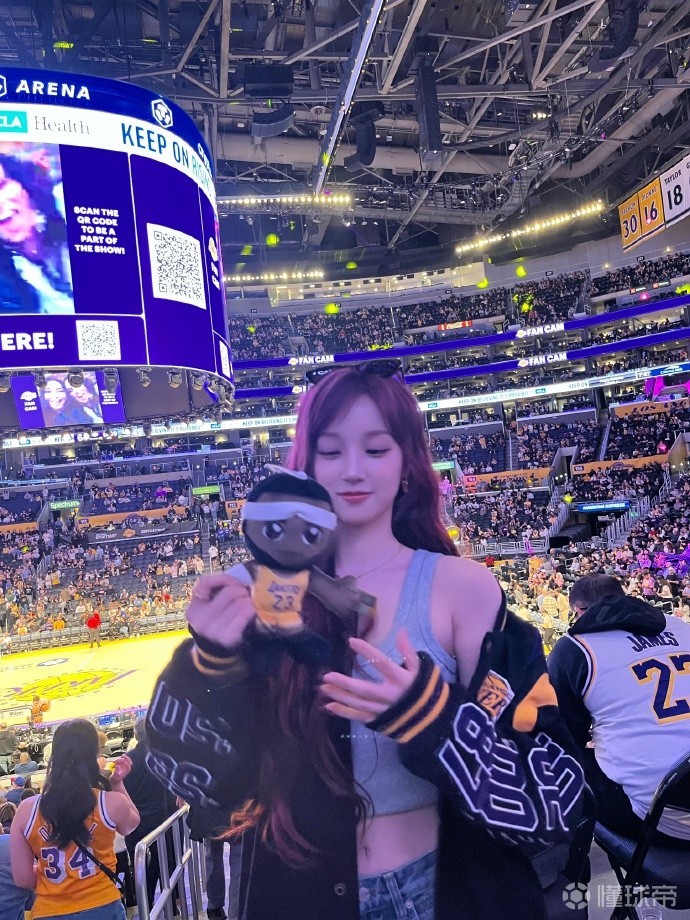 3月2日,国内知名女子偶像宋雨琦前往洛杉矶湖人队的主场,为湖人队加油,为自己的偶像詹姆斯助威。