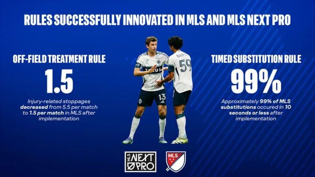这两项规则2024年在北美大联盟试行,2025年进入墨西哥联赛参与的联赛杯。两项新规在减少拖延比赛时间方面,效果立竿见影。北美大联盟因球员受伤导致的比赛暂停次数减少72%,场均5-6次降到1.5次。2025赛季北美大联盟510场比赛合计4346次换人,仅有12次违反“10秒限时换人”规则,有效加快了比赛节奏。