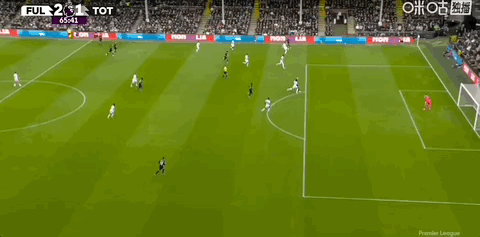 第66分钟,格雷传中,里沙利松后点头球破门,热刺扳回一球1-2富勒姆。