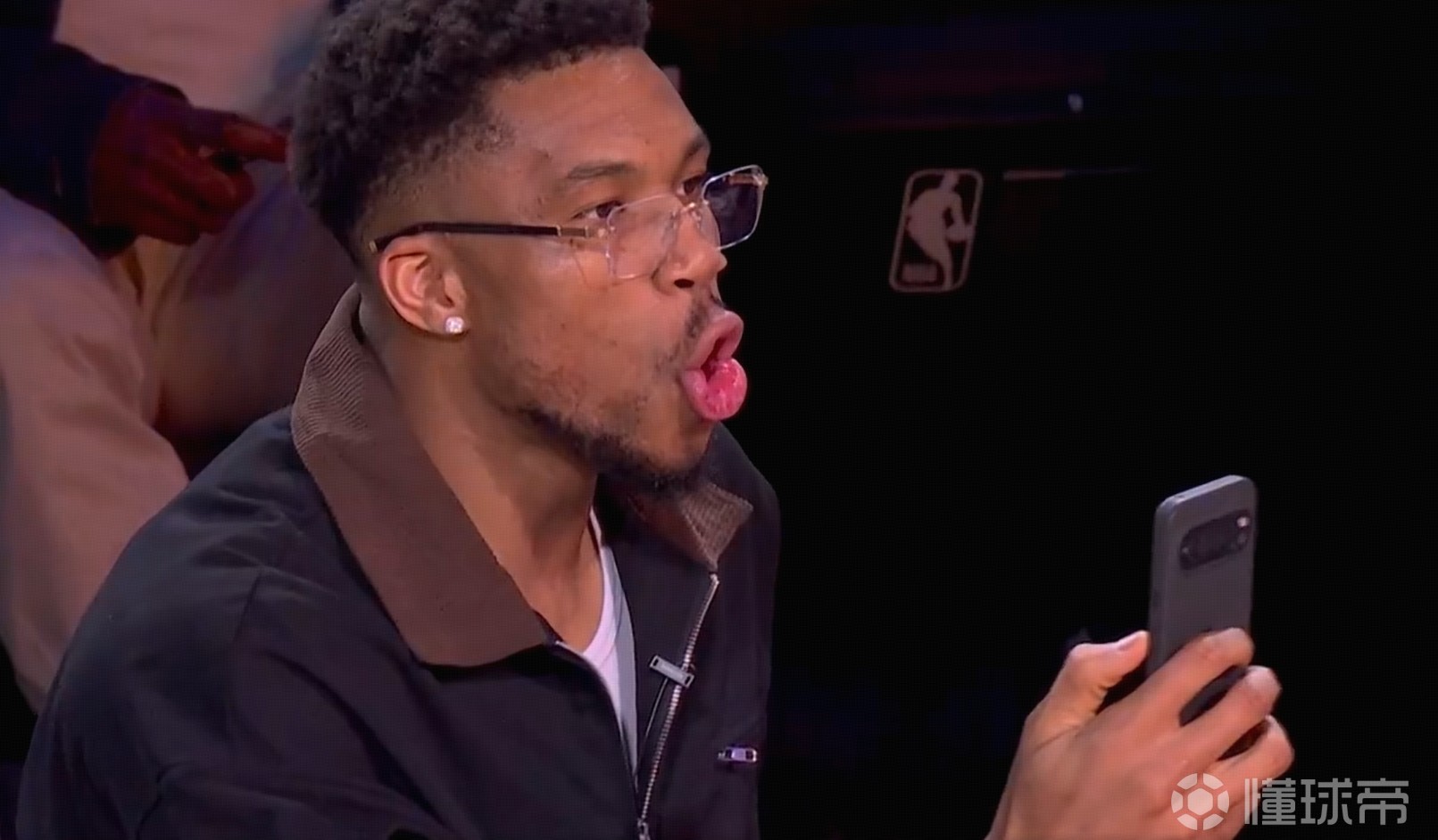 卡特-布莱恩特完成胯下大风车,得到本次扣篮大赛唯一一个满分扣篮,并将字母哥惊出“表情包”。