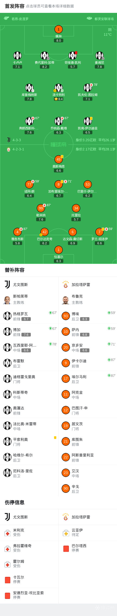 第36分钟,图拉姆造点,洛卡特利点射命中,尤文1-0加拉塔萨雷