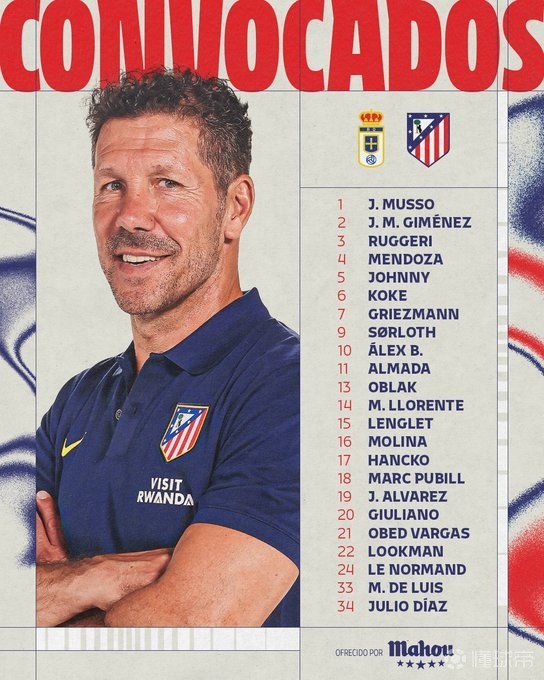 马竞客战奥维耶多大名单:
